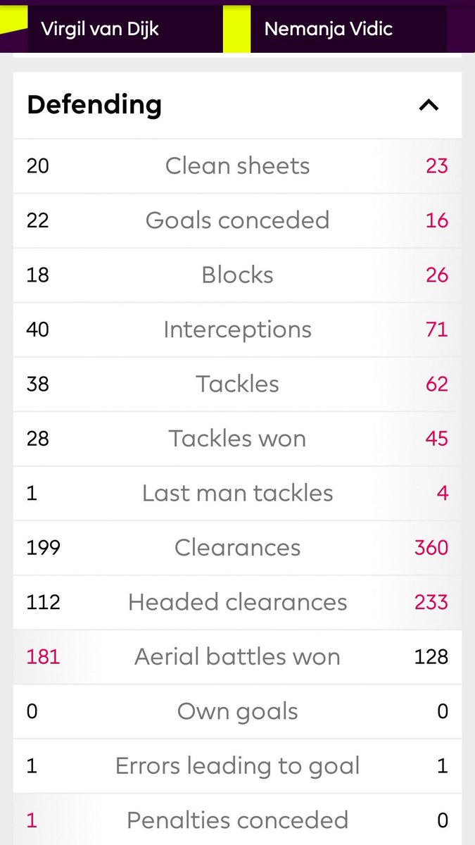 Stats Comparison Between Nemanja Vidic And Van Dijk Proves