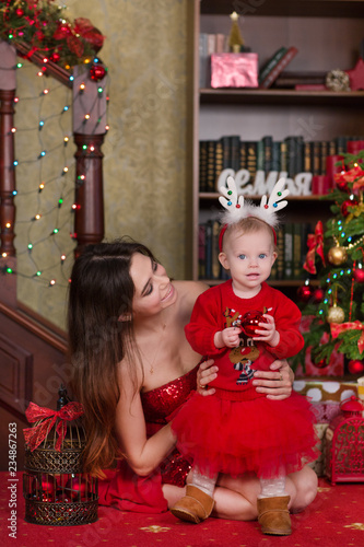 Christmas Family Scene Of Love And Fairy Mother Holding Cute Baby